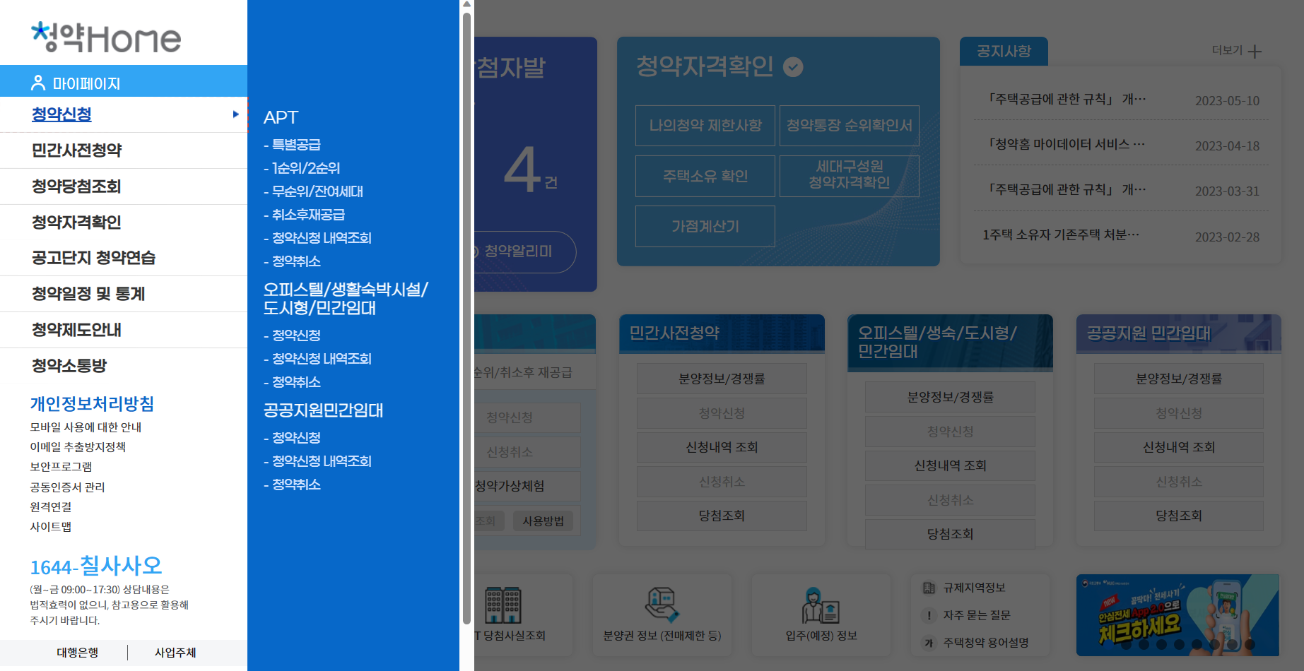 - 아파트, 오피스텔 등 신규 주택에 대한 청약 신청 사이트