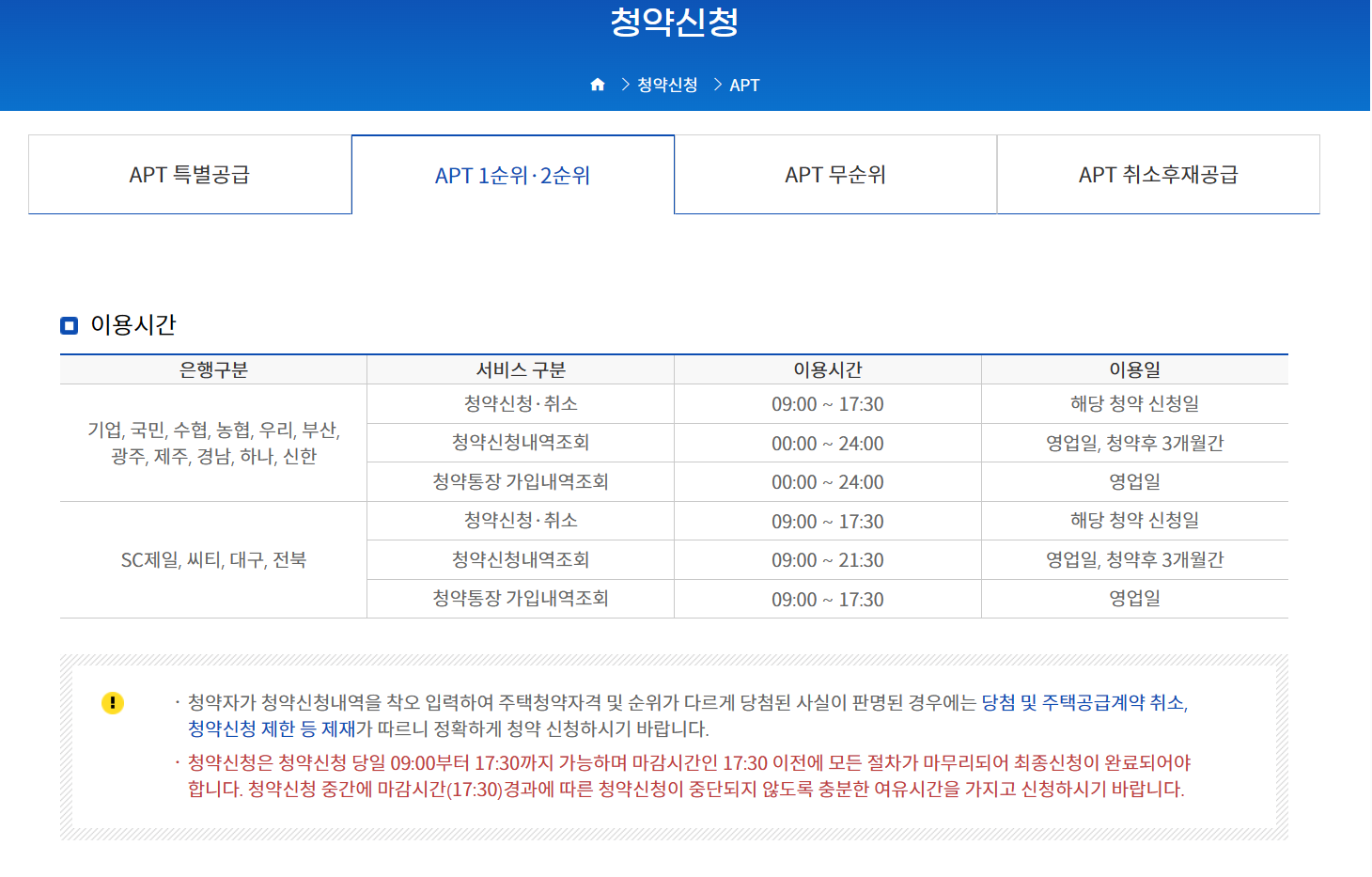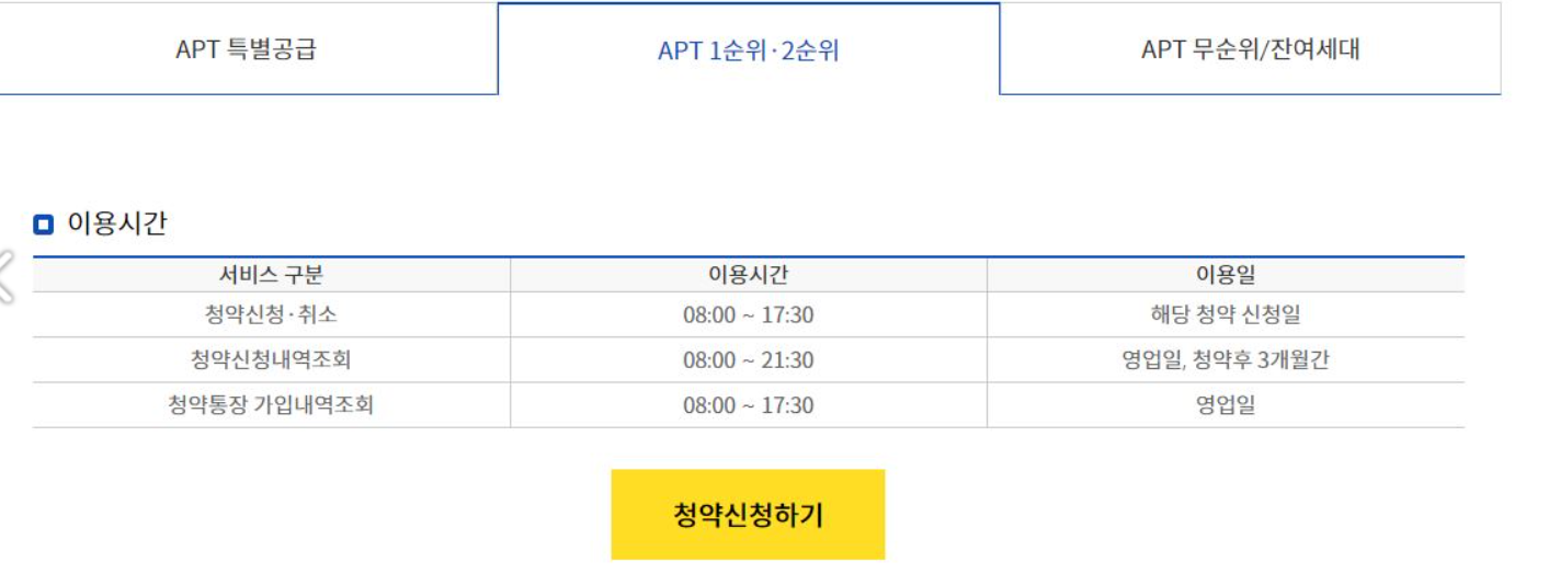 3) 청약 신청하기 * 이용시간, 이용일 잘 확인하기 !